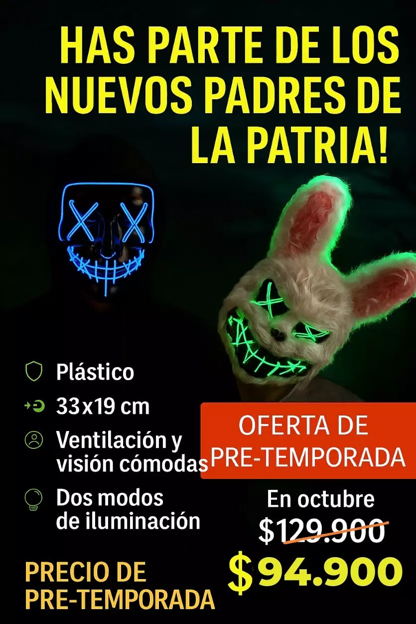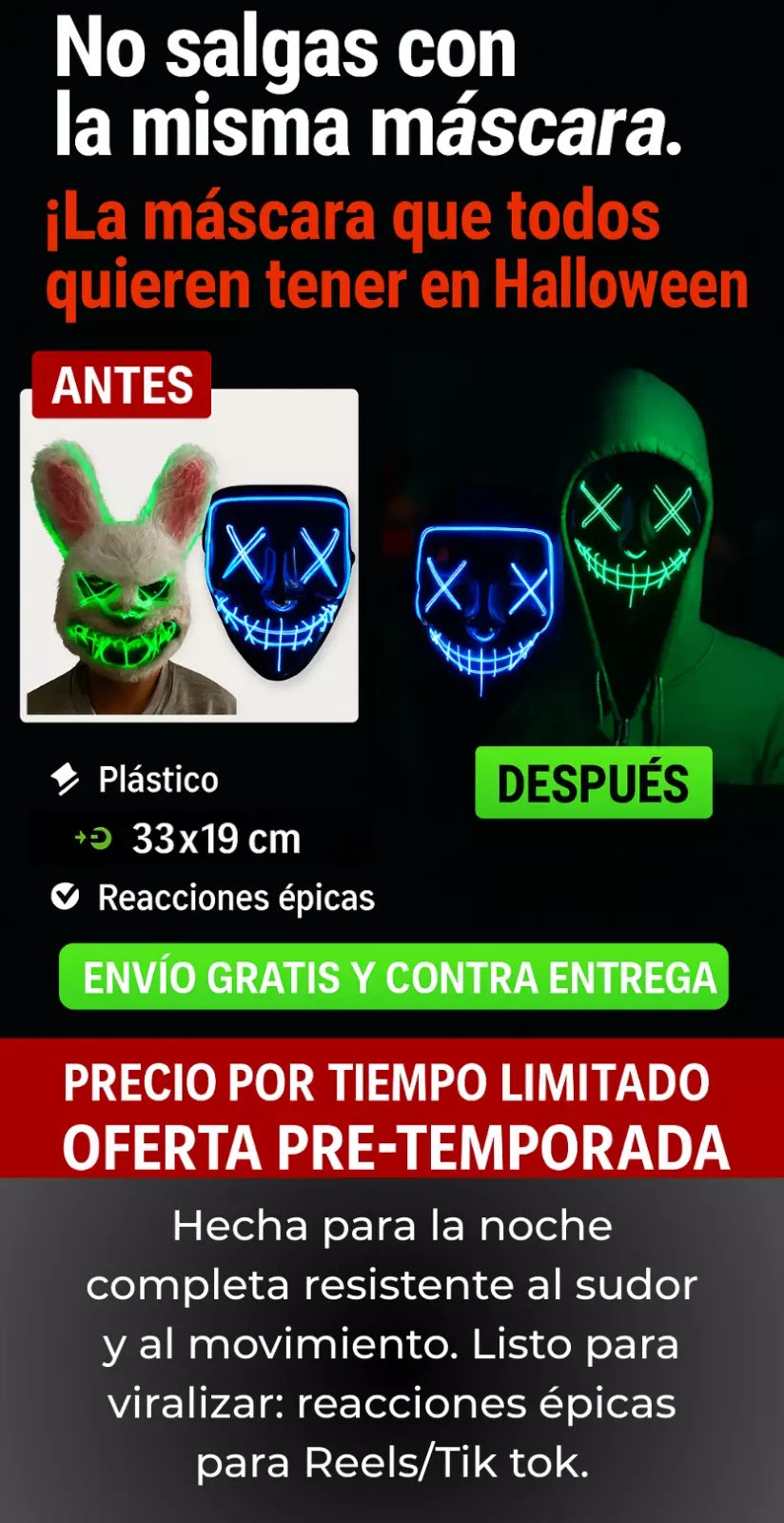 Sí ✅, las máscaras funcionan con pilas AA seguras y consumen poca energía. Son livianas y cómodas para usar durante fiestas o recorridos de Halloween.